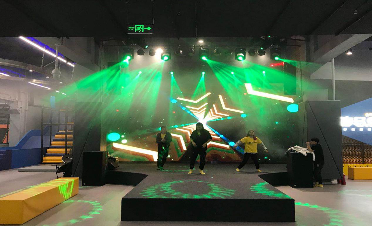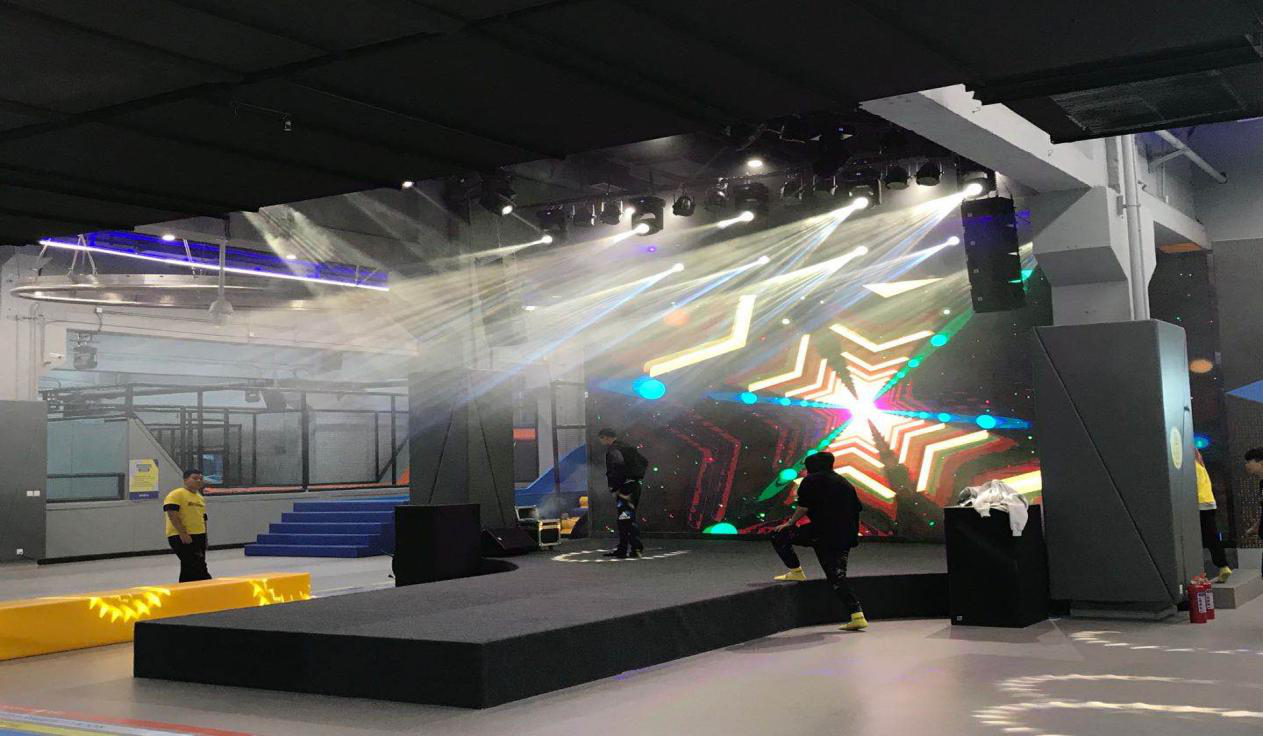 燈光方面,為了營造舞臺區(qū)域的演出效果。使用了Baiangde GS330光束燈20臺,LED染色燈40余臺及其它10余臺效果燈具。部分極限運動區(qū)域,配合場地音樂動感需求,也針對性安裝了十多臺無極幻影燈。