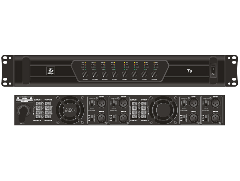 技術參數(shù) 立體聲模式:200W×8/8Ω,300 W×8/4Ω; 橋接模式:600W×4/8Ω; 線路類型:Class D; 總諧波失真:<0.01%@8Ω 1KHz; 信噪比:>103dB; 輸入靈...